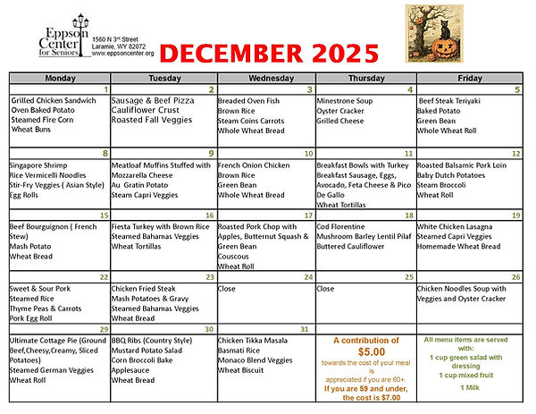 Congregate (dine-in) meals are served Monday - Friday 11:30 am - 12:30 pm.